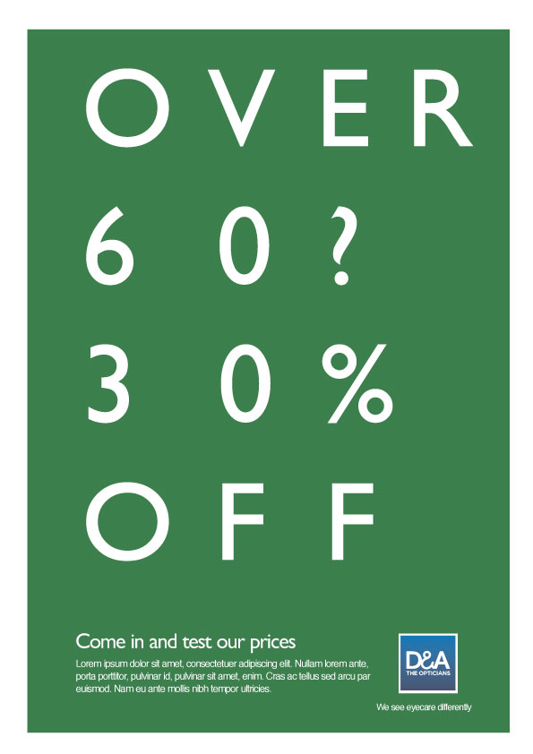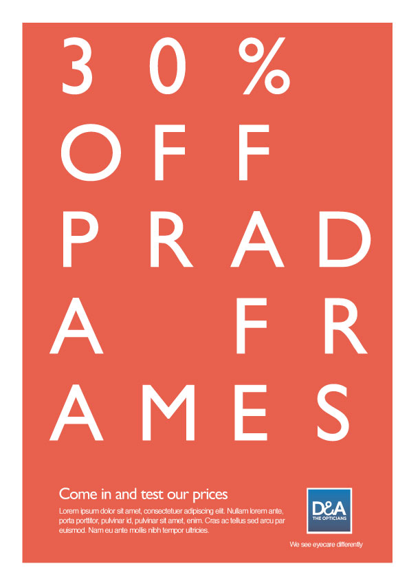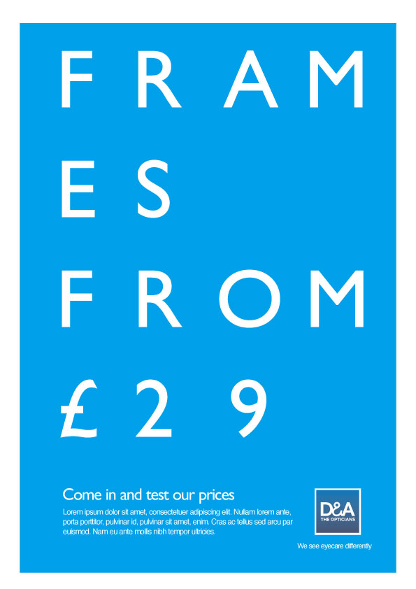 Dolland & Aitchison required some simple window display posters to point out that their prices were every bit as competitive as other, less well- established opticians.